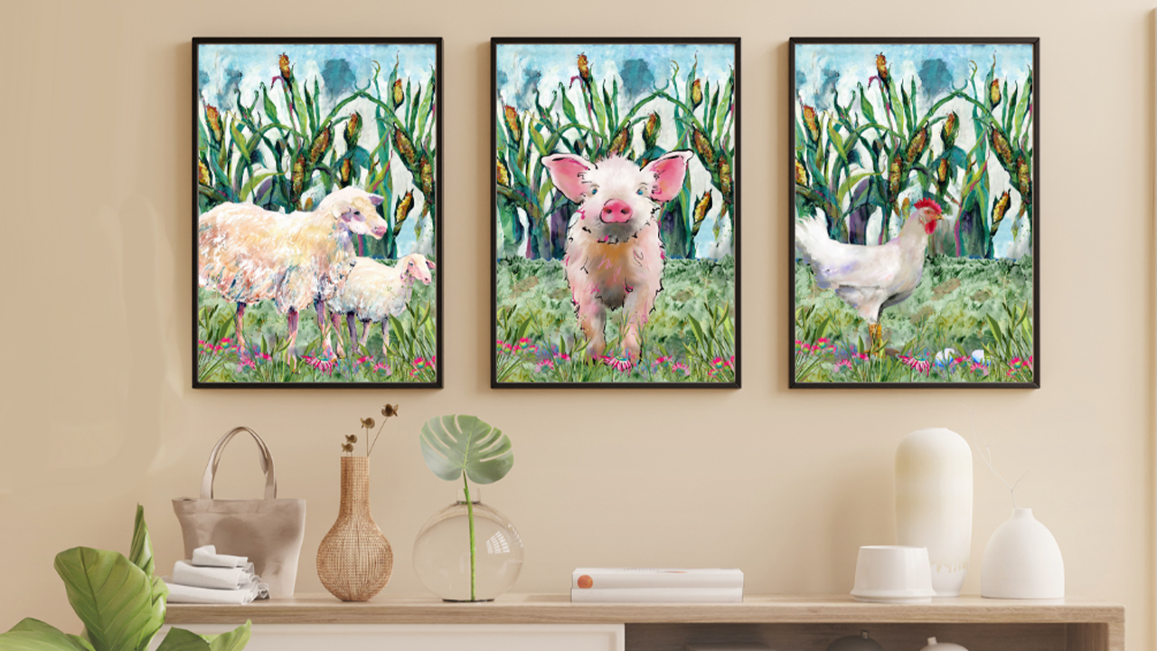 "Cornfield Companions" ... Farm Animal Art by Anne Gregory Framed Canvas